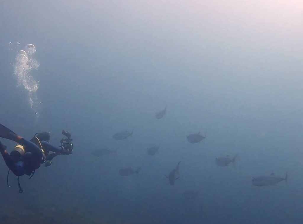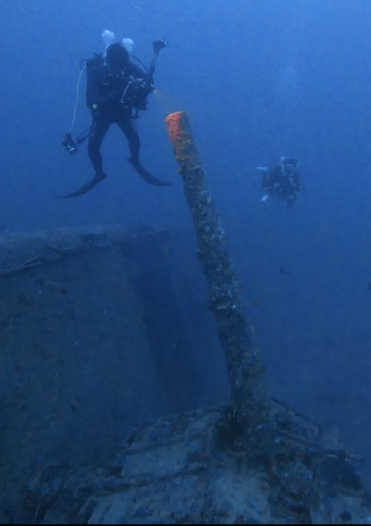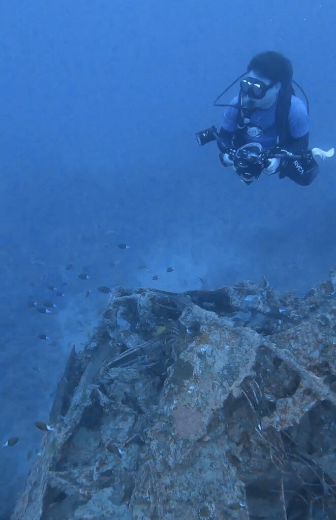 なんとウェットスーツを脱いで潜った勇敢なゲスト様。